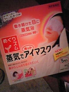 今週の放送で ケンコバが大輔に 「夜なかなか寝つけない」と相談したら ススメられて購入した商品 「蒸気でホットアイマスク」 そいつが 我が家のキッチンにあった アイマスクの下で蒸気が出て 疲れ目などに すごく気持ちがエエんやって 最近の母ちゃん 「確定申告」まかせっきりなんで かなり目が疲れているらしい なんで 速攻で購入 そんなリラクゼーションアイテム 効果の方は どうやろ? オイラも昔 ハンズやったかロフトやったか忘れたけど この手の商品購入した覚えがあるが イマイチ効果がどうだったか 覚えて無いんやよね