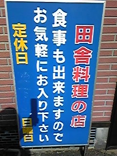行ってみたい店がある いつもの散歩道Bコースの途中にある店 「田舎料理」? たとえば? な! ワクワクやろ!? でも料理店なのに 「食事も出来ますので・・・」って????? それ以外やったら 何しに行くんやろ?
