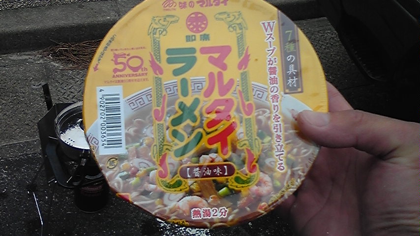 今朝も行って参りました 「高浜」 朝一にU1君から波情報です 「セット ヒザ モモ オン 面△」 うねりにパワーが無いので ロングなら遊べます おおっ! やった! それでは行かねば って事で 「高浜」曇り チェッ・・・ でも波ありますね~っ イソイソと着替えていると 荒川方面より 先生サーファー登場 なので2人での入水です 2時間程で かなりの数を乗り 2人とも大満足 満潮になりザイズダウンしたので ブレイクタイム&ランチ 本日のオイラの飯は おなじみ「カップ麺」 しかもお初 「マルタイ ラーメン」のカップ版ですわ 九州地方では定番中の定番らしい 味のマルタイ創業50周年 でも こいつは醤油味 2分でOKの最速麺 カップなので さすがに棒ラーメンではありません 味は ラーメンと中華そばの間って感じか? おにぎりと一緒に食して ごっちゃんです それで 干潮は17時位 1時間ほど様子を見ていたけど 干潮まで時間がありすぎ・・・・ 当然波も上がらず・・・・ 早々にあきらめ 先生サーファーを残して帰路に 明日の朝も出動かな? そんな午前中サーフィン 本日もお腹イッパイでした
