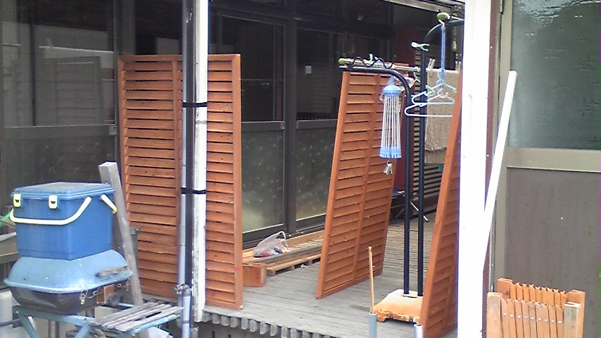 新居での最初の大仕事は ワンコの為の柵作りです 前回と変わり今回は「ラチス」での製作 大きなラチス2枚と小さいラチス1枚使います こんな感じで完成 真ん中のラチスは引き戸になっていて 開閉ができます 我ながら満足の作品 ここは ワンコの留守番部屋で デッキテラスの部分が6畳ほどで 倉庫兼ワンコ部屋が8畳の贅沢な部屋 リビングは 2部屋使用で16畳+1畳(PCコーナー)の広い部屋 廊下も細長いながら6畳ほどあるため ダーツルームにしちゃいました 岐阜での家もデカかったけど ここも広い・・・・ 母ちゃんのサロン6畳も離れであります 好都合な事に玄関付き 寝室も10畳程の広さ 5DKですが廊下を入れると6DK 2人+2匹では広すぎか? 築は古いですが満足の借家です