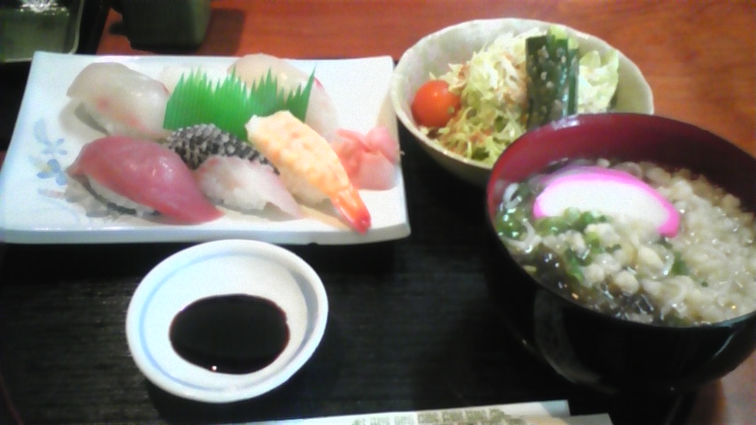 先日の事ですが 市内の寿司屋さんのランチを食べました 「寅寿司」さん 多分「虎」の字を使ってないので 大将が寅年なのか? 店内にもトラの絵など多数あり そして注文したのが 「寿司定食」 お味噌汁のかわりに五島うどん付き ¥1050 一貫が結構大きな握り マグロの赤身に見えるのは 「シビマグロ」 このお店も店頭のディスプレーなど 集客を考えて企業努力をしてみえるお店です