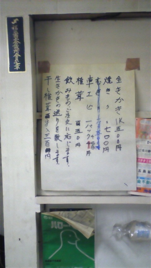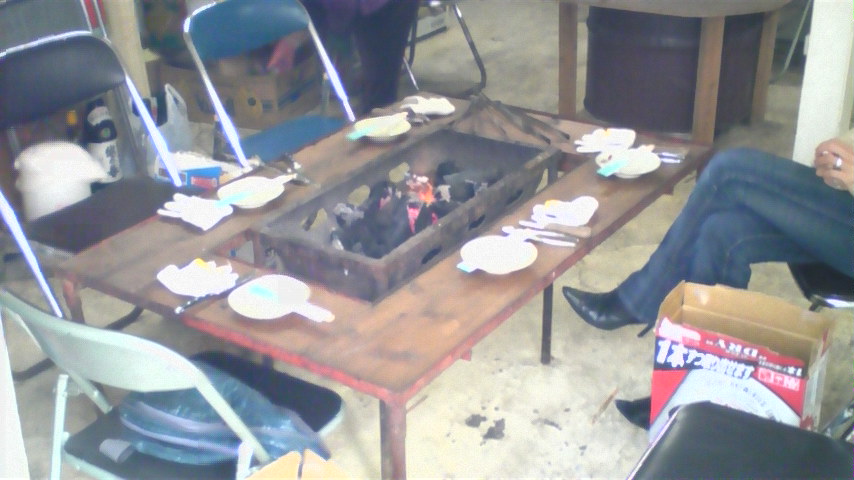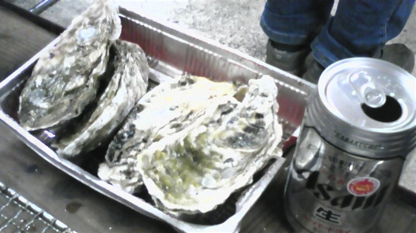 昨晩行って来ました 牡蠣屋さん なんともまあワイルドなお店です 五島弁で言うと 「ばらかねぇ~っ」です パッと見営業中なのか分かりません 店内はこんな感じ ズバリ室内BBQ状態 メニューはこれだけ しかし 昨夜は新しいメニューが加わりました ジャジャ~ン 海のダイヤモンド「アワビ」です 残酷焼きで 一人1個丸かじり お値段なんとお試し価格で 1個 ¥300!!!! 安! そして なんとアワビのお造りです ¥1600也 牡蠣・車エビ・アワビは すべて久賀島産で 当日18時に届いたばかりの新鮮な物です おじさんと仲良くなり 貴重な2年物の牡蠣も出してもらいました かなりのデカさの牡蠣 ジューシーで美味い! 5人で ビール15缶+牡蠣4Kg+特大牡蠣5個+車エビ15匹+アワビ5個+お造り しめて ¥12500 持ち込みOKなので 五ほるの残り物の肉と ワイン2本持ち込みました 満足のスペシャルディナー 今月末までの営業なので 来週あたり誰か一緒に行く?