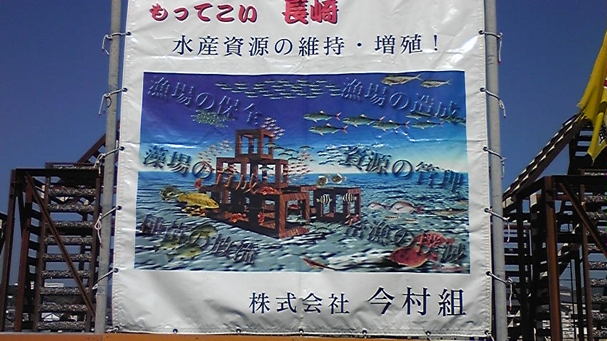 いつもの散歩道にこのような物があります そこで問題です Q.これは何でしょうか? 5秒でお答え下さい 2秒経過 シンキングタイム終了! 答えは 頑丈な建売住宅 ごめんなさい うそです 何て言うんだろう?? あのう・・ 海に沈めて漁礁や藻の育成場にしたりする物です 散歩道の制作現場では 定期的に8棟一度に作っては 海に沈めているみたいです 最近五島でも最近「魚が釣れない」と言う言葉を良く聞きます たしかに私が初上陸した13年前と比べると 魚が釣れません・・・ 昔は本当にエサを付けている時間の方が長い位 いつでも・どこでも入れ食い状態だった経験があります これも温暖化の影響なのでしょうか? と 思うのですがすべてそうでは無いでしょうね 心無い人たちの密猟や海・川・山などへのゴミの投棄 生活水の海への垂れ流しなど温暖化とはまっつたく関係無い原因も沢山有ると思います 海の近くに住んで 自分だけでもと最近は特に地球に優しくしようと心がけています 対馬では定置網に「クロマグロ」100匹以上捕獲 宝くじに当たったみたいとの事 あ~っマグロの赤身食べたい! 宝くじ当たりたい・・・ 五島で「ジャンボ」当たるのかな?