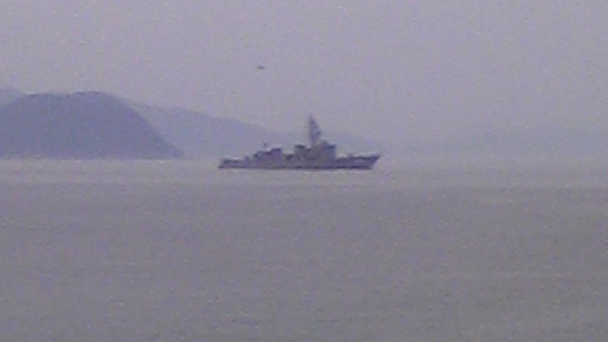 今日の主役は この島の右後ろにかすかに見える島が主役です